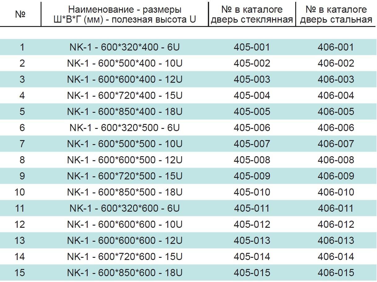 Корпус NK-1-19’’ выпускается: 5 высот, 3 глубины в версии со стеклянной или цельнометаллической дверью.